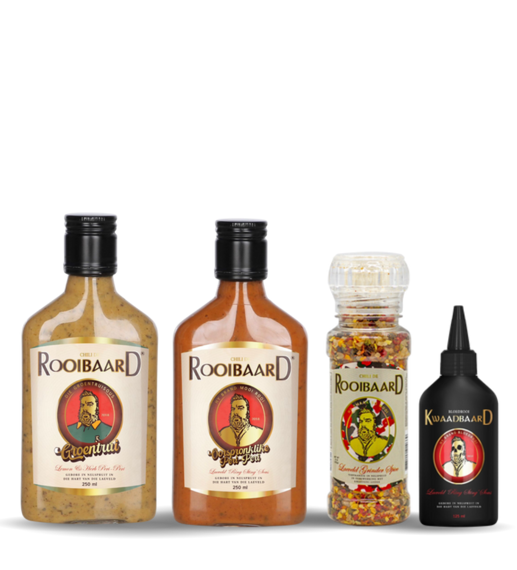 Rooibaard®️ Kwaadbaard - een van die hittigste chilliesouse op die mark, vol skerp, vurige smaak wat jou kos laat brand en jou smaakknoppies laat gloei!